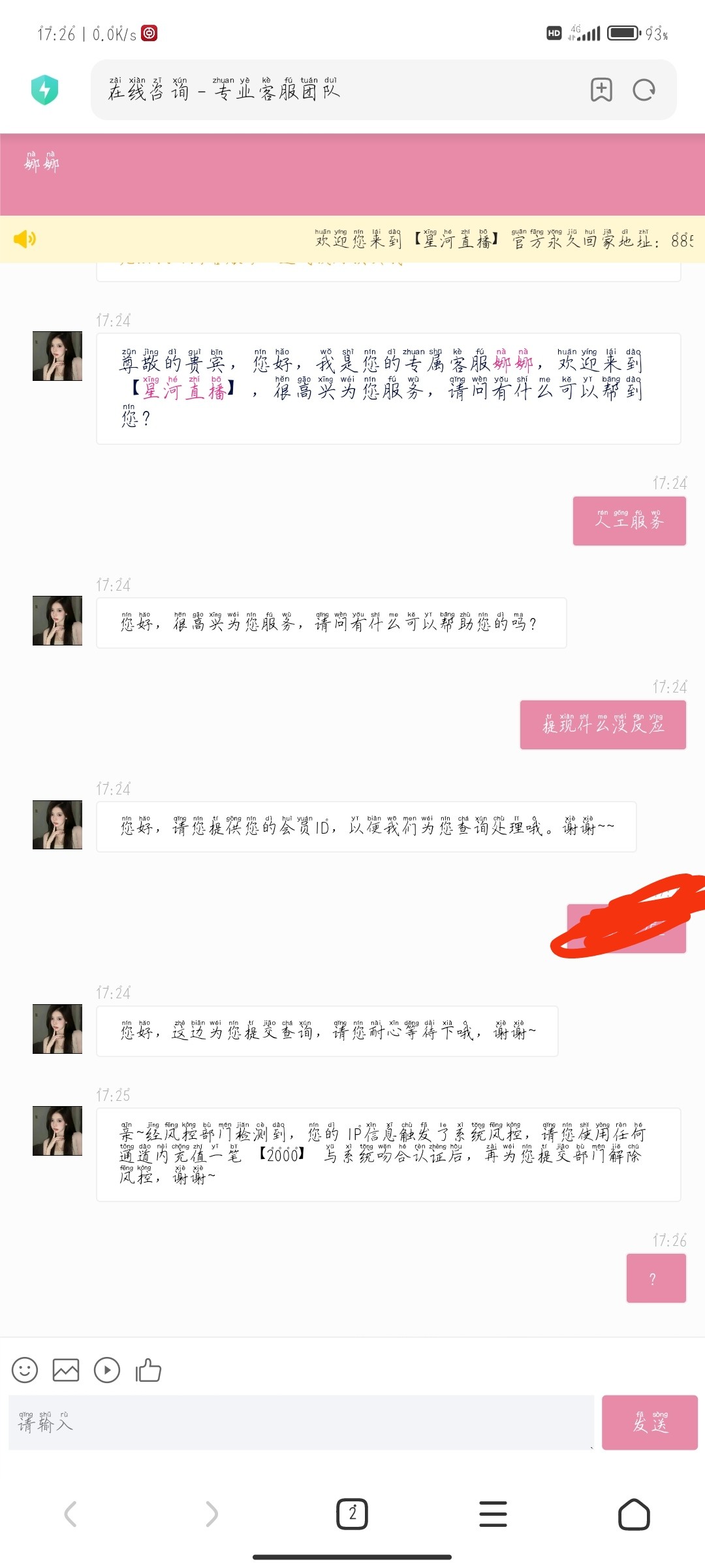 ,网址星河直播黄台8856点体v充值800黑款3千,