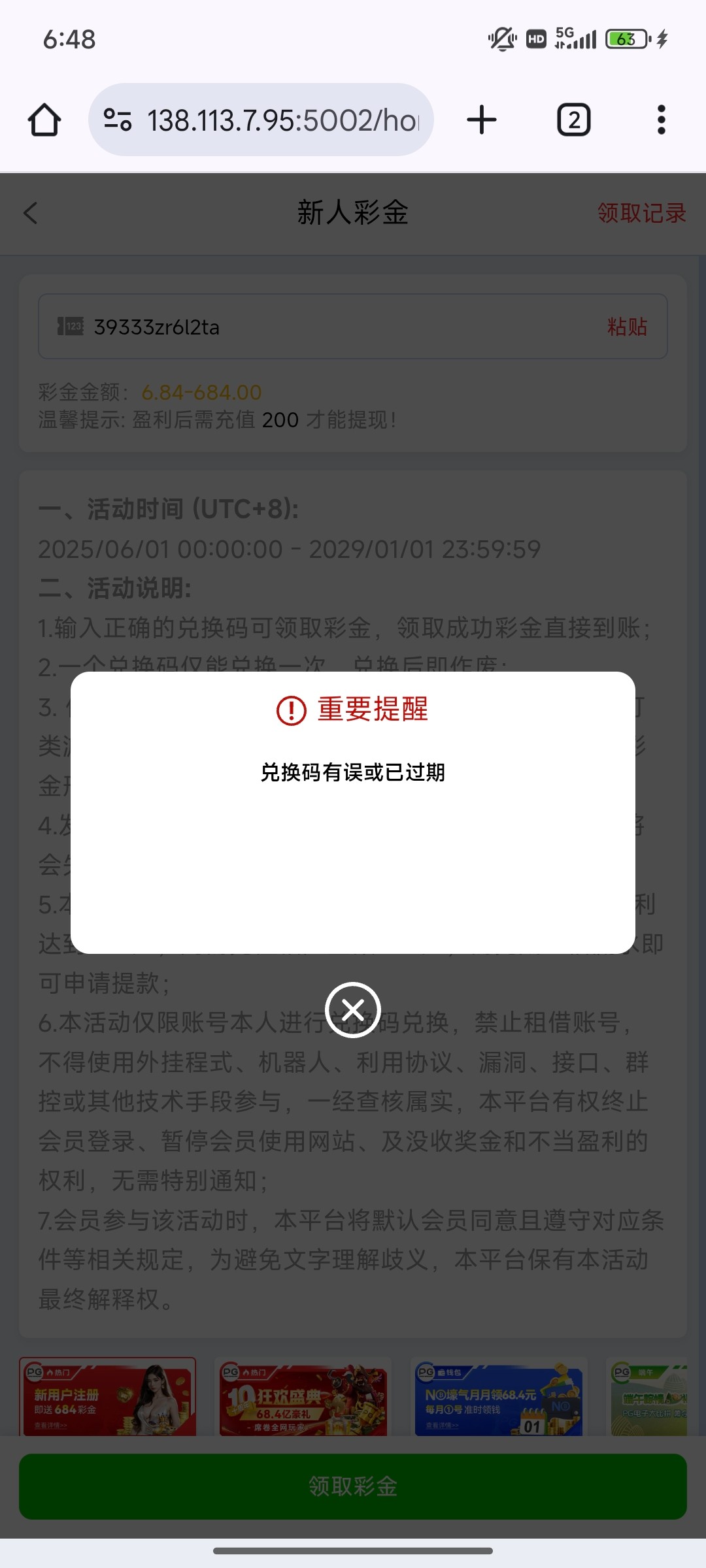 兑换码过期