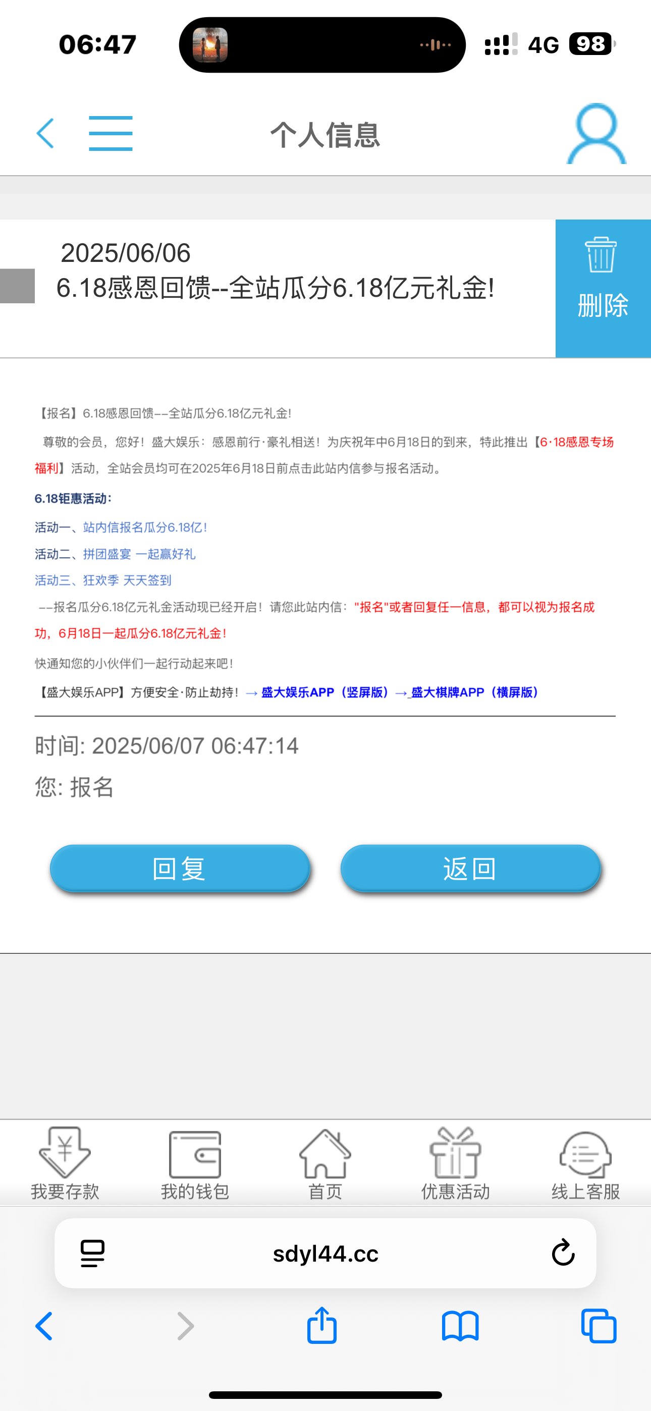 盛大站内信瓜分彩金