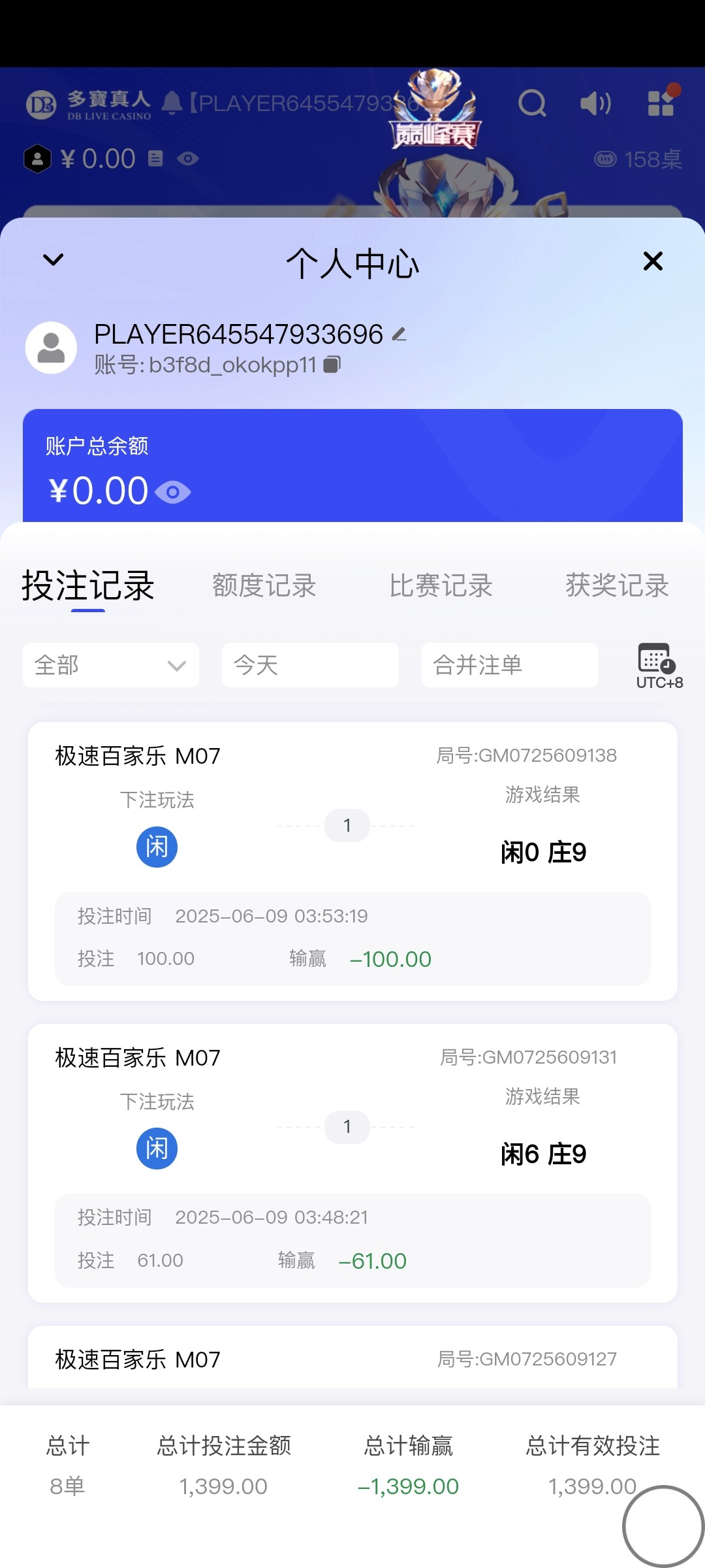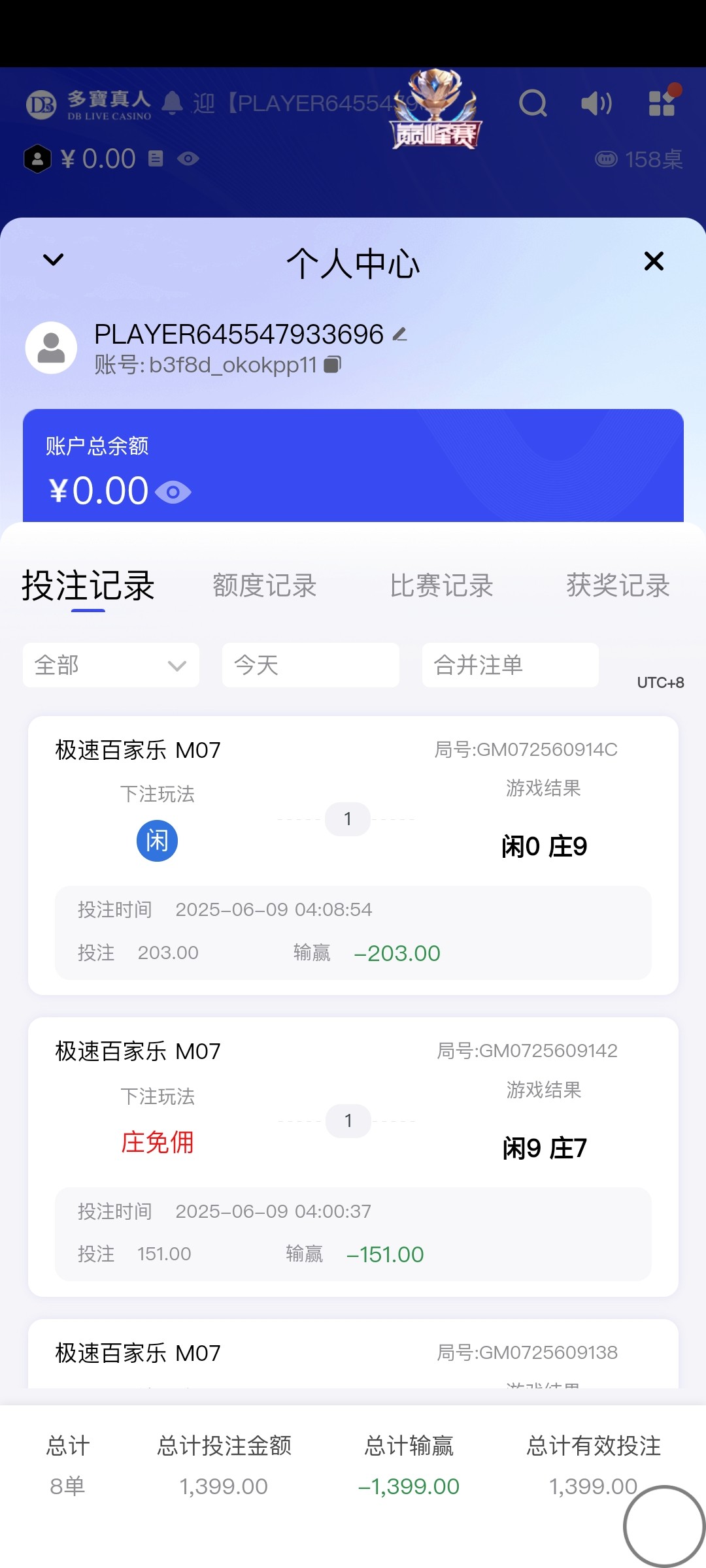db最高连着13手被八九点杀,而且还是换了台子玩的