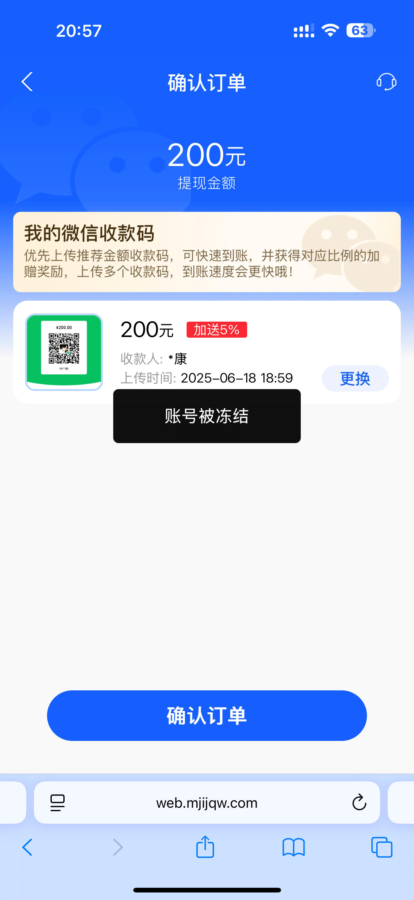 提现200被p了然冻结我不冻结对方,我也是服了那个傻逼p的图也不对,我微信名字叫18他p了个扫码支付给16,这么烂的p图名字都不对我也是服了