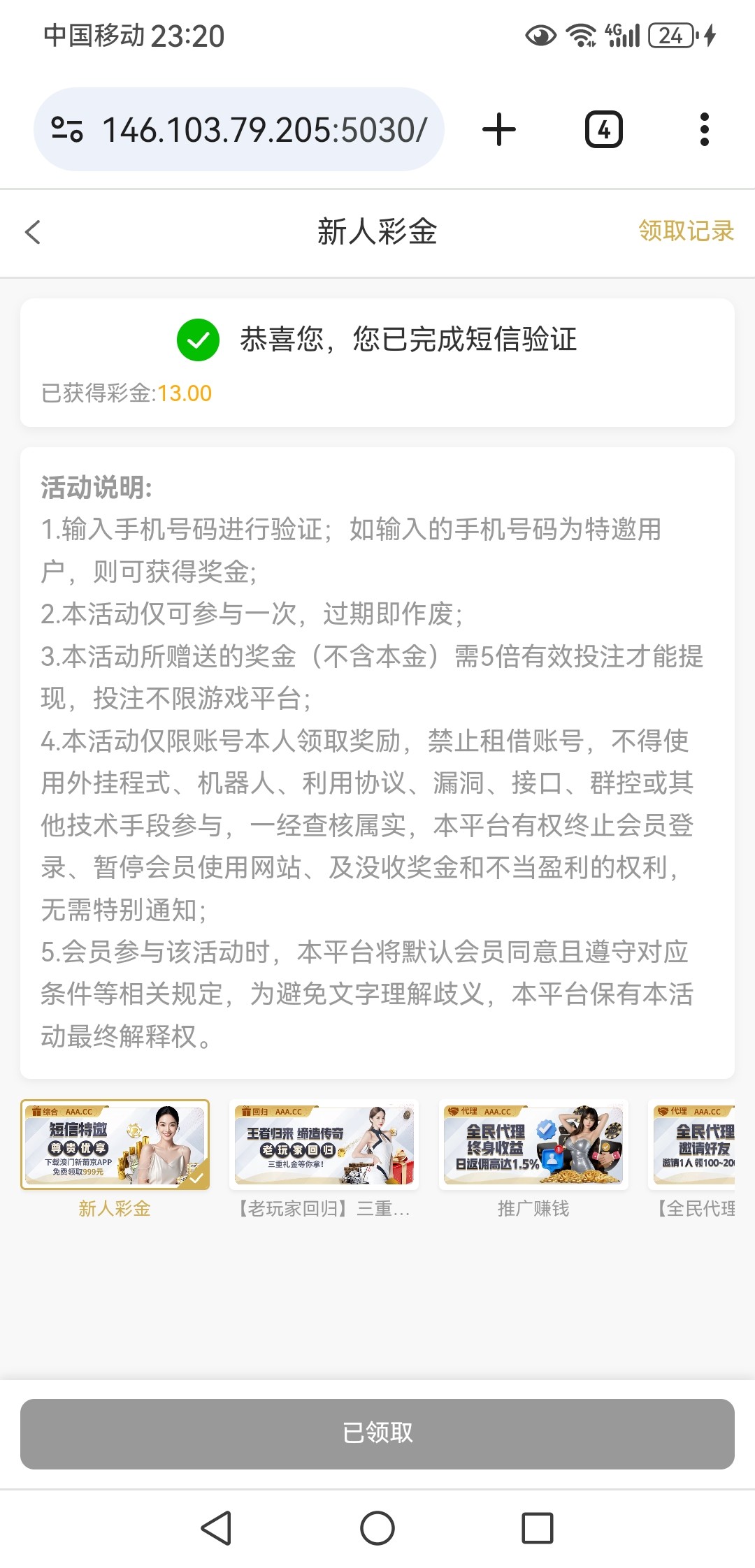 aaa短信验证领取彩