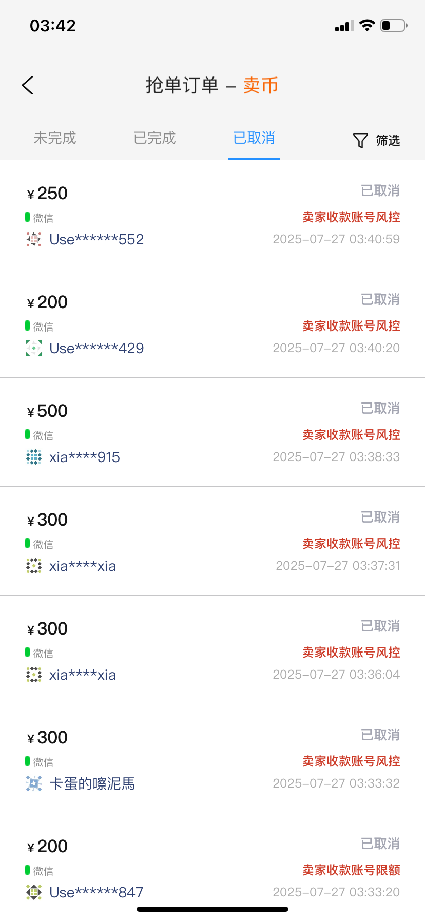 这个是买家取消买币提供的资料显示你微信风控,本来微信就很严,比支付宝严多了,你稍微多几个人给你转账就风控。