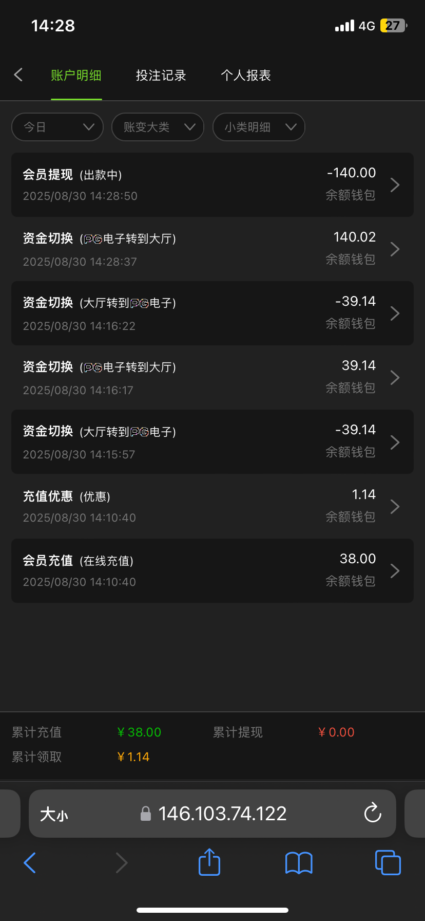 赶紧删除了,黑台 38+38提现175封号了