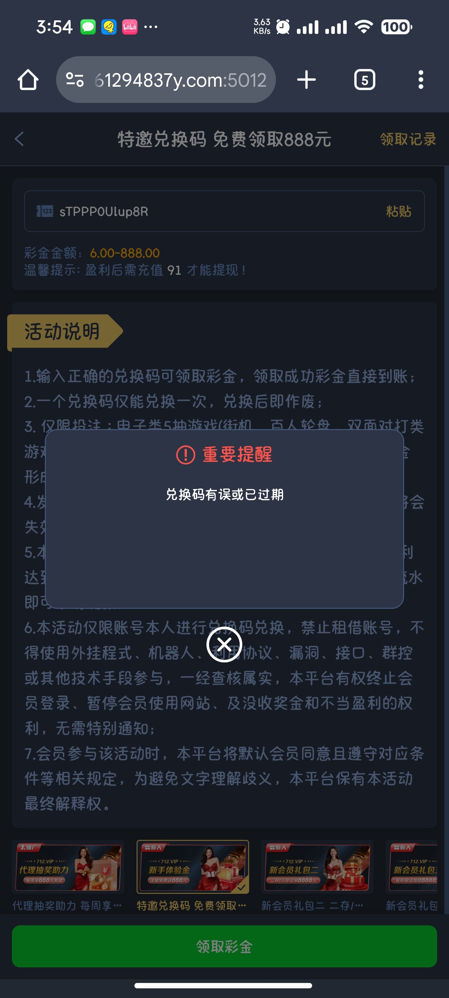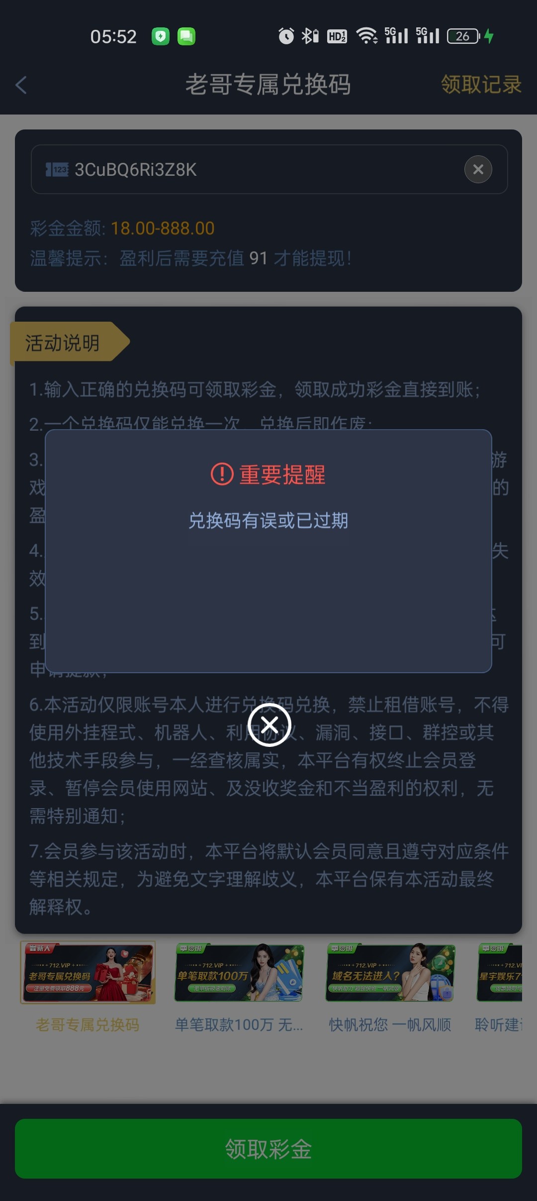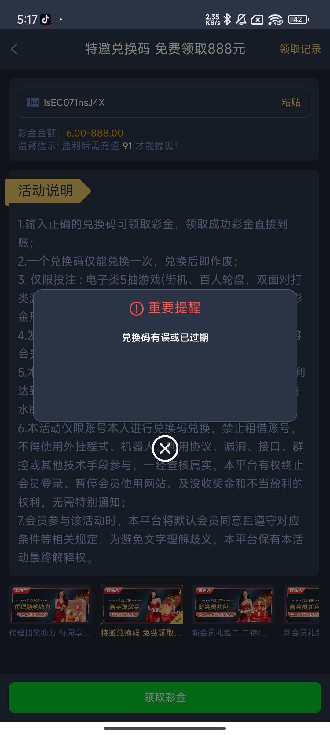 兑换码有误