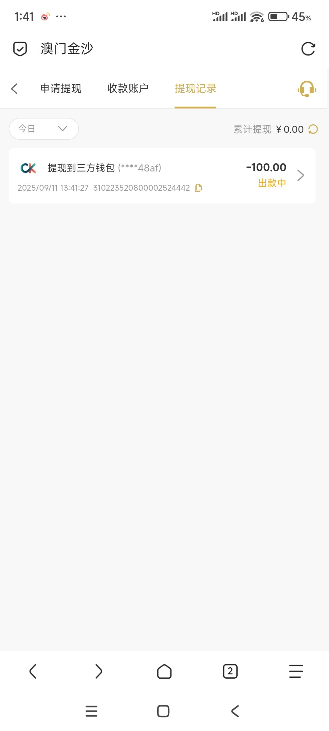 28 彩金吃上了 提现三分钟之内到账