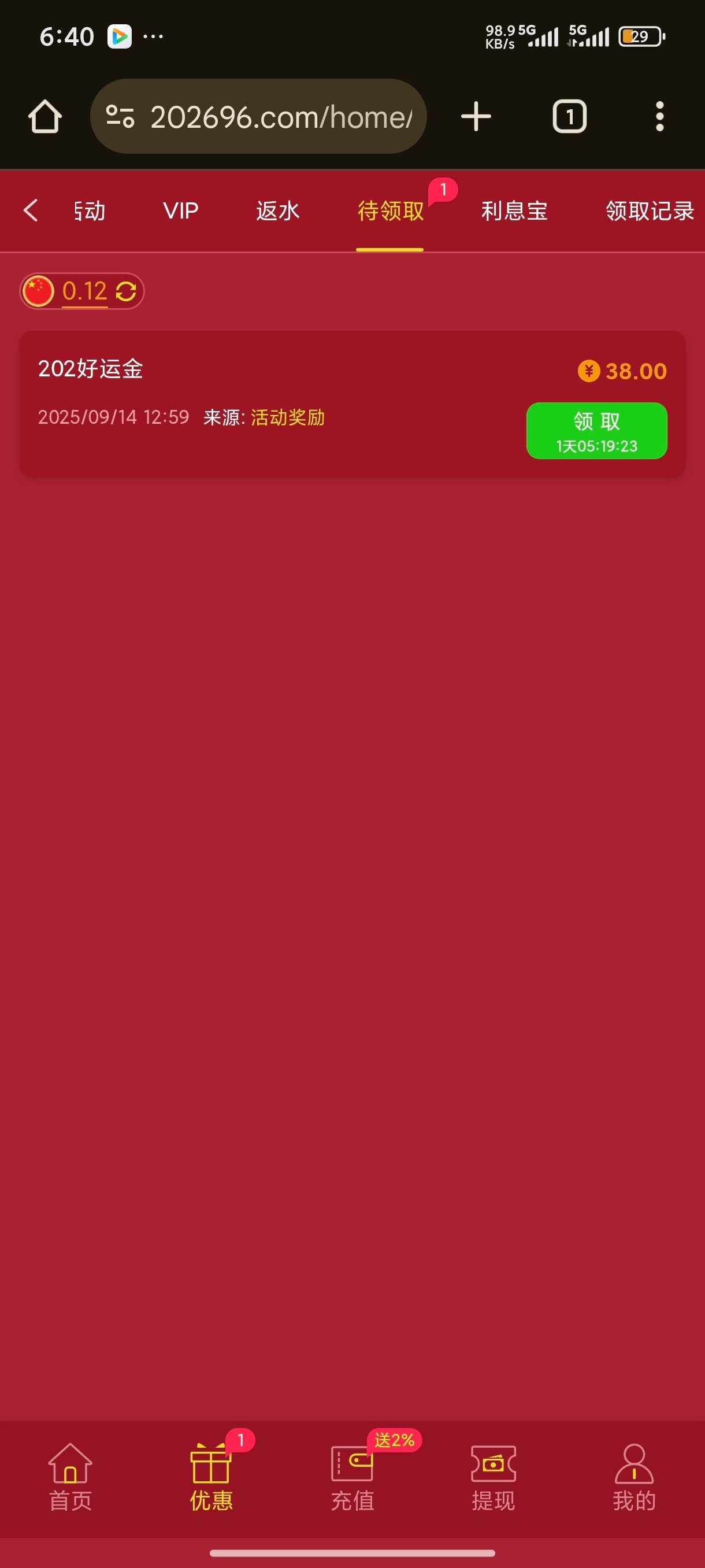 毛都没有,之前充过600
