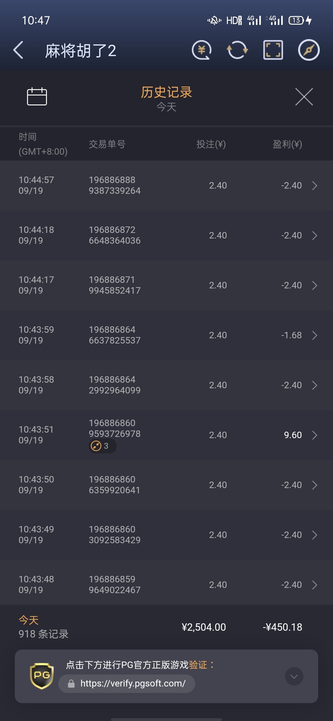 540块钱,拉了4000流水,一次胡也没有进,玩的pg麻将2
