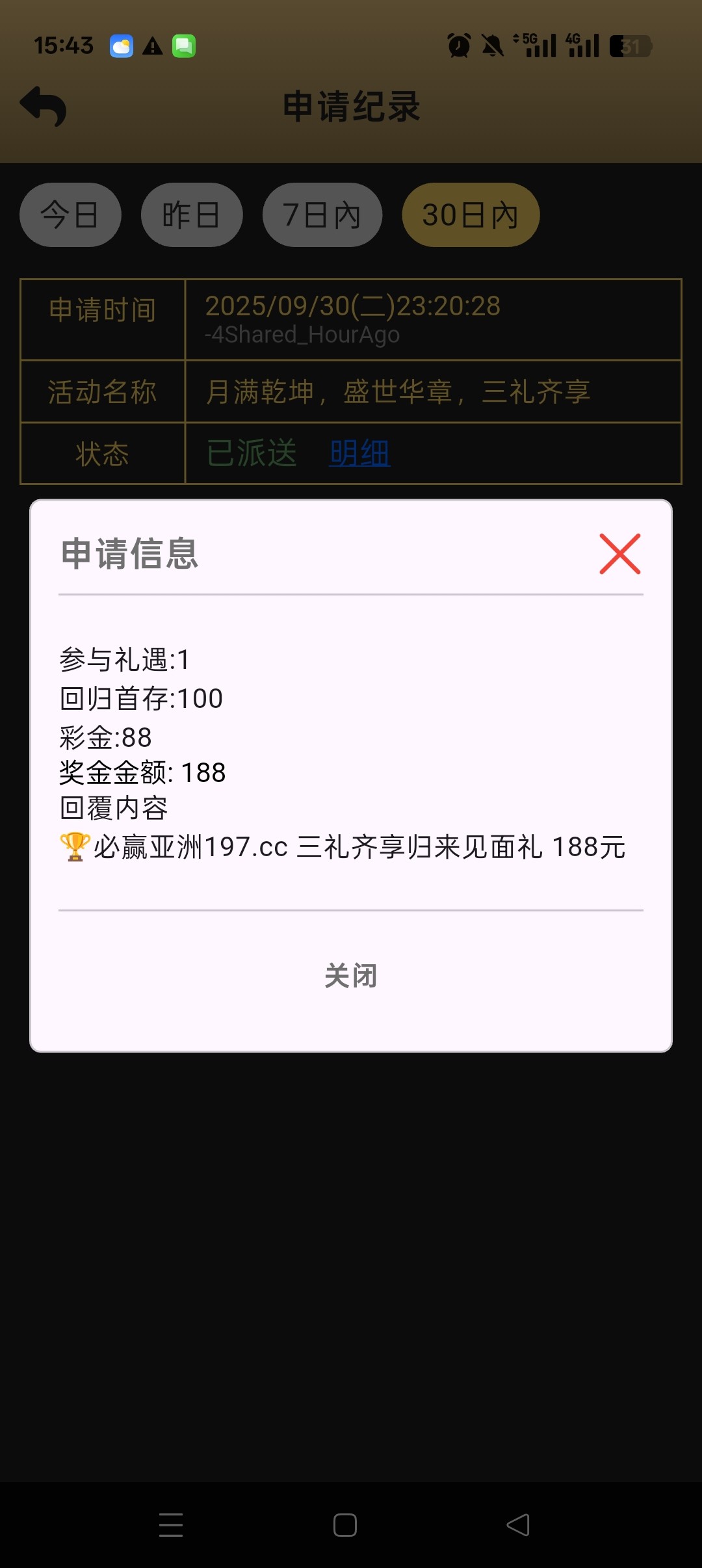 15天没充送28 30天没充送58 90天没充送88 要有充值过3次100的才可以