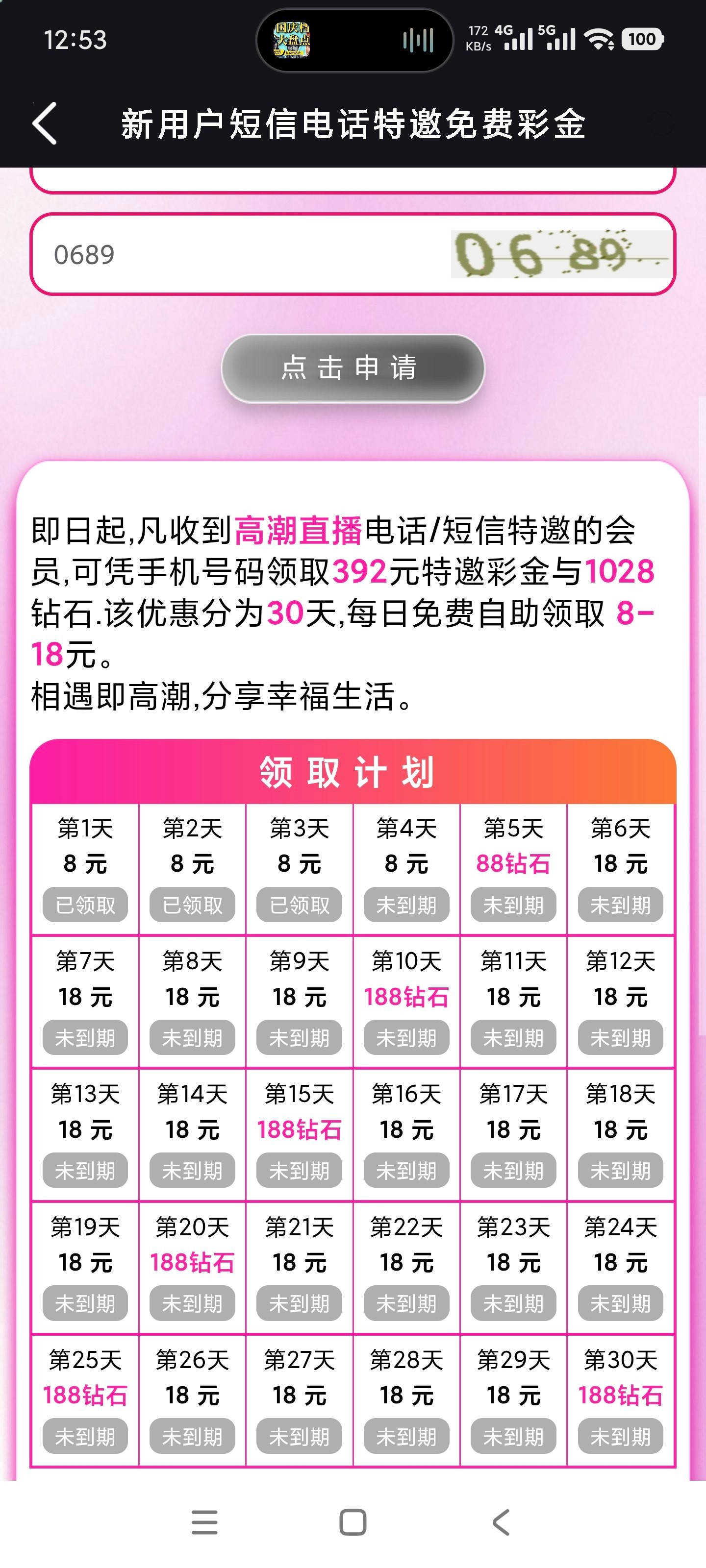 第一天的领到了上来就爆 要充值一笔才能提现 我存十块试试