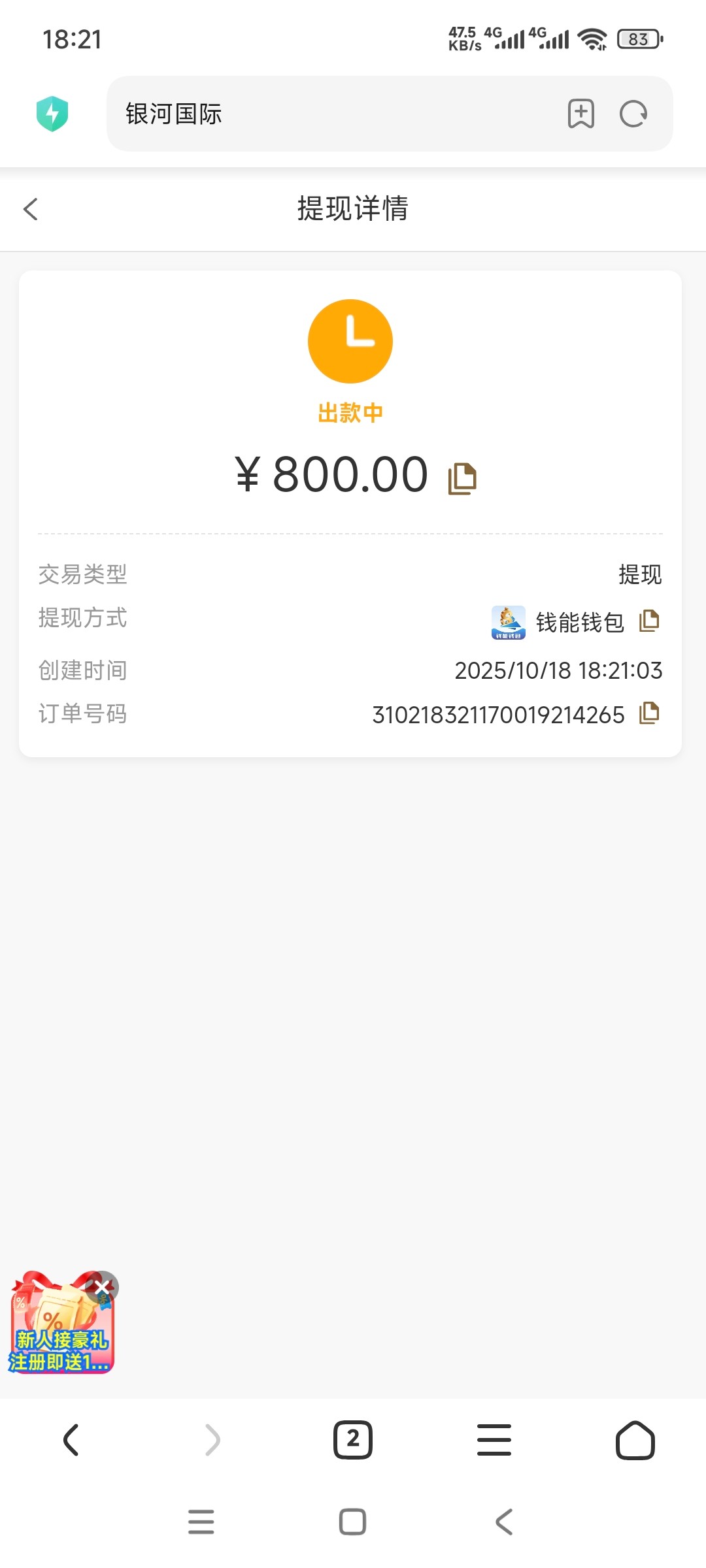 打电话给我充了50块,提了800就把我账号拉黑了。大家主意