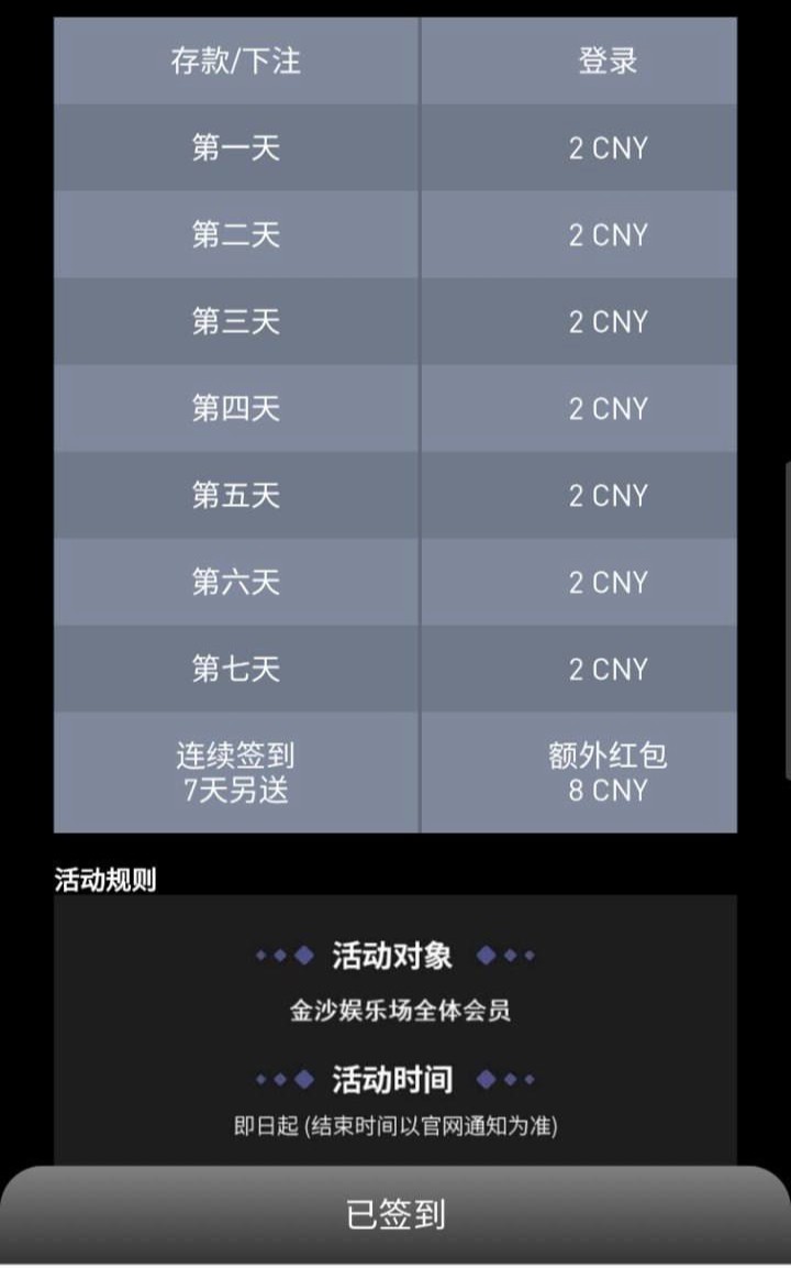 金沙签到领彩金活动
