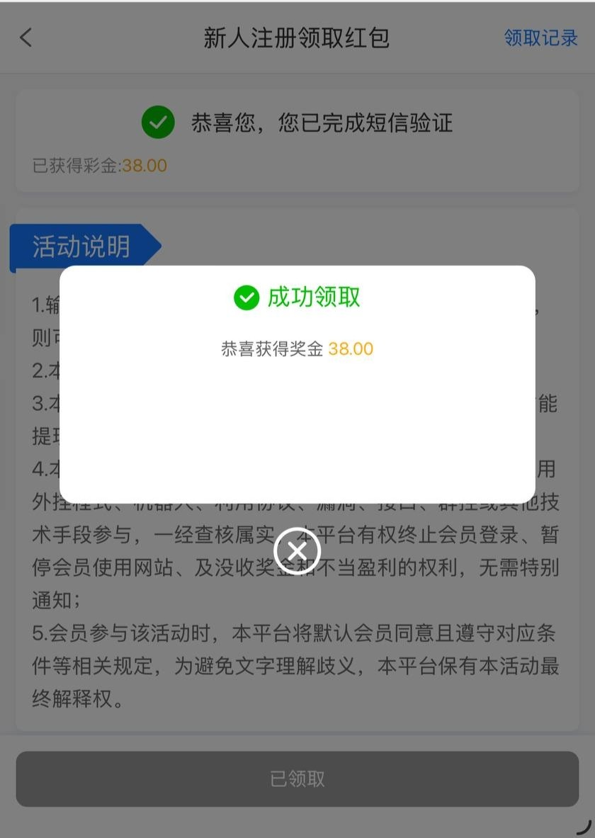 新用户注册绑定好信息优惠里面自助申请特邀38彩金,有就有没有无视吧