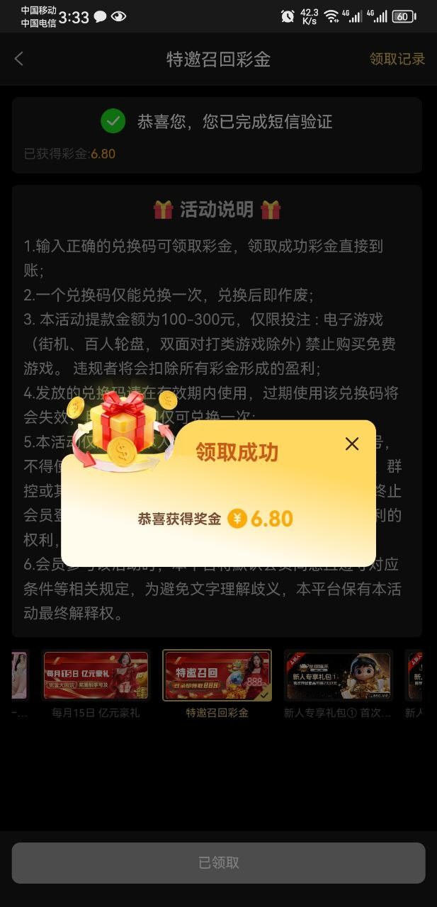 有号登录自助领取彩金,有就有没有无视吧