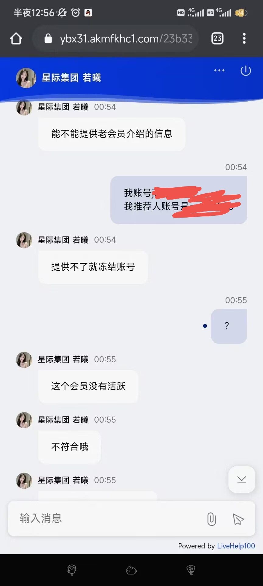 第一次玩充值了500没有领取优惠,提款被黑,让提供介绍人老用户账号不然直接冻结账号,我是自己去玩的没有人介绍,就用这个借口黑款了,大家避雷吧!