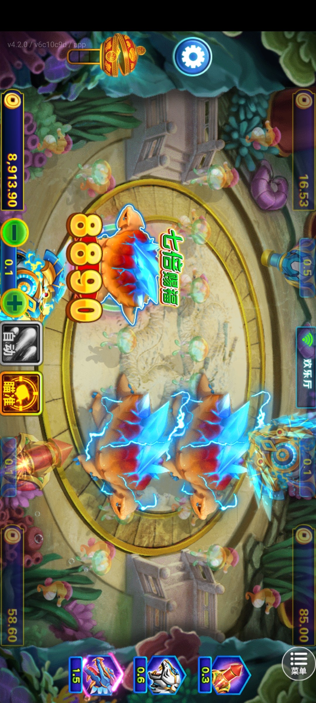 我刚刚玩龙王捕鱼中级场看到有人减注点错打100的六倍炮,五下余额点完一个没打死