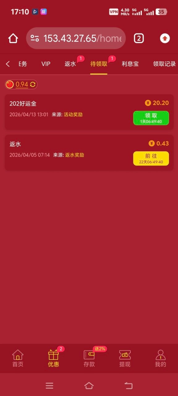 老用户有号登录看看有没有好运彩金领取,有就有没有无视吧