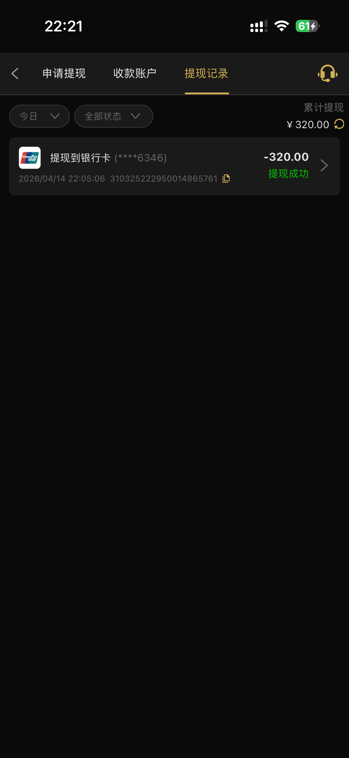 只能出288,但是我提现的时候320也照样给我出了