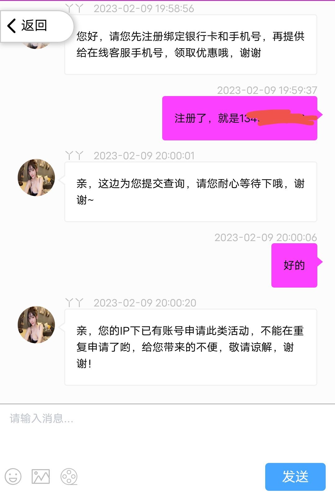 特邀碰瓷,自己看看有没有下方短信,也可以碰瓷申请连续送两个月10彩金,先绑卡再申请,具体自测勿充值勿充值。