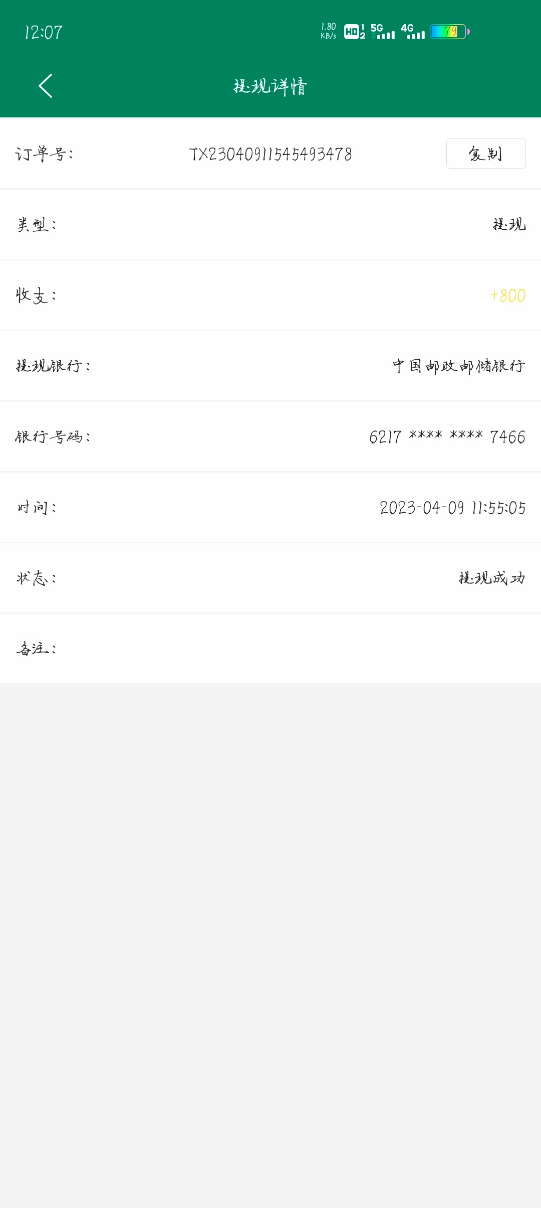 兄弟们我已经提款800到账了