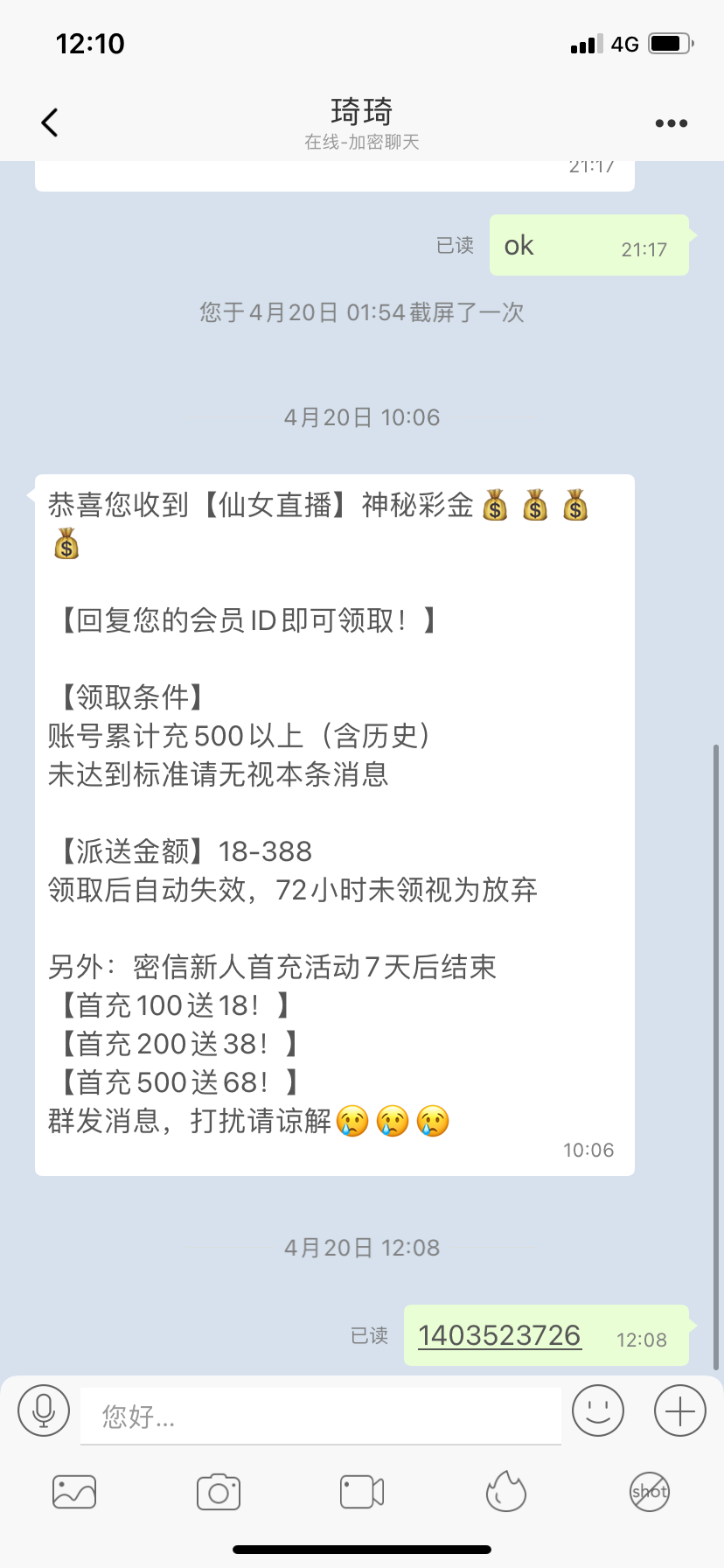 这个傻逼 广东会月初才冲过送彩金给我直接就冻结了