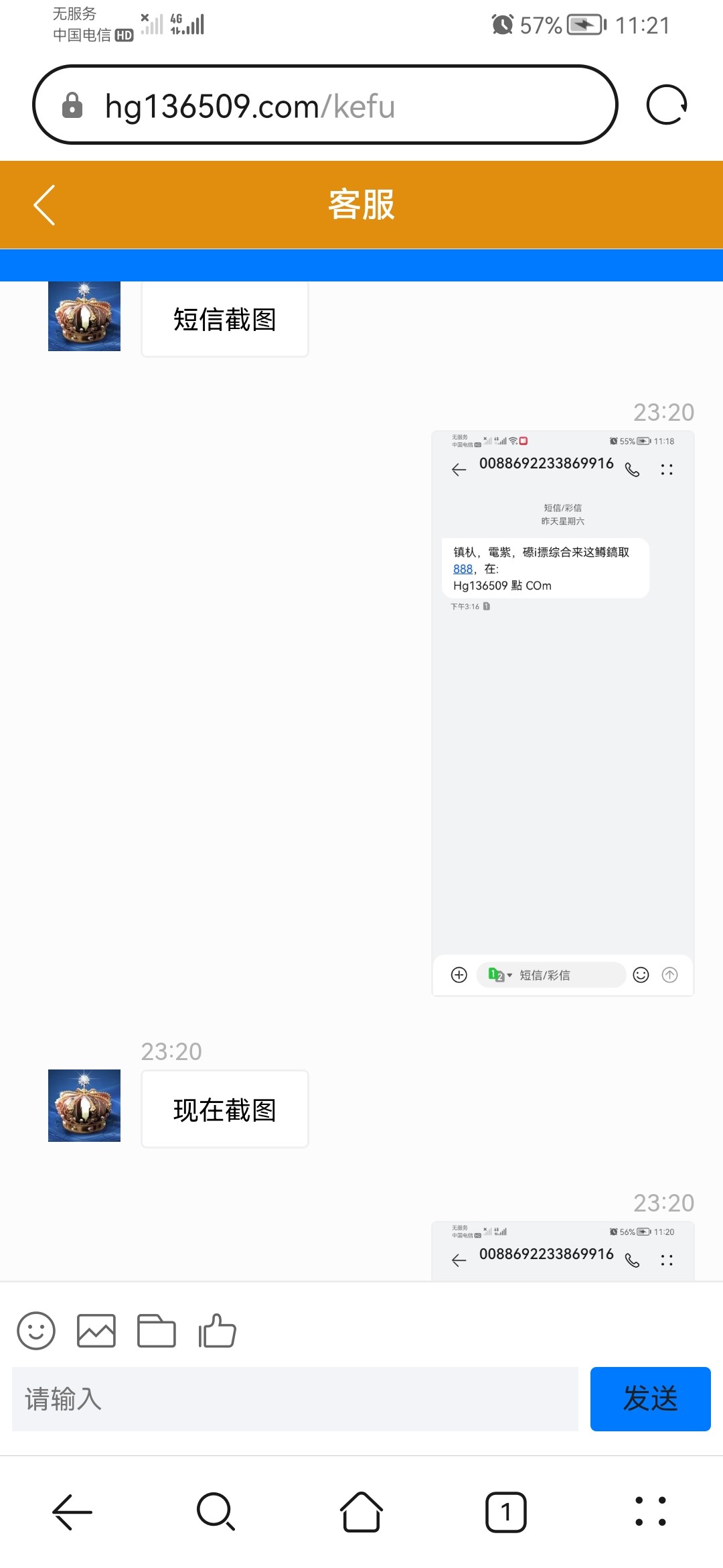 短信p图才行,已经送了