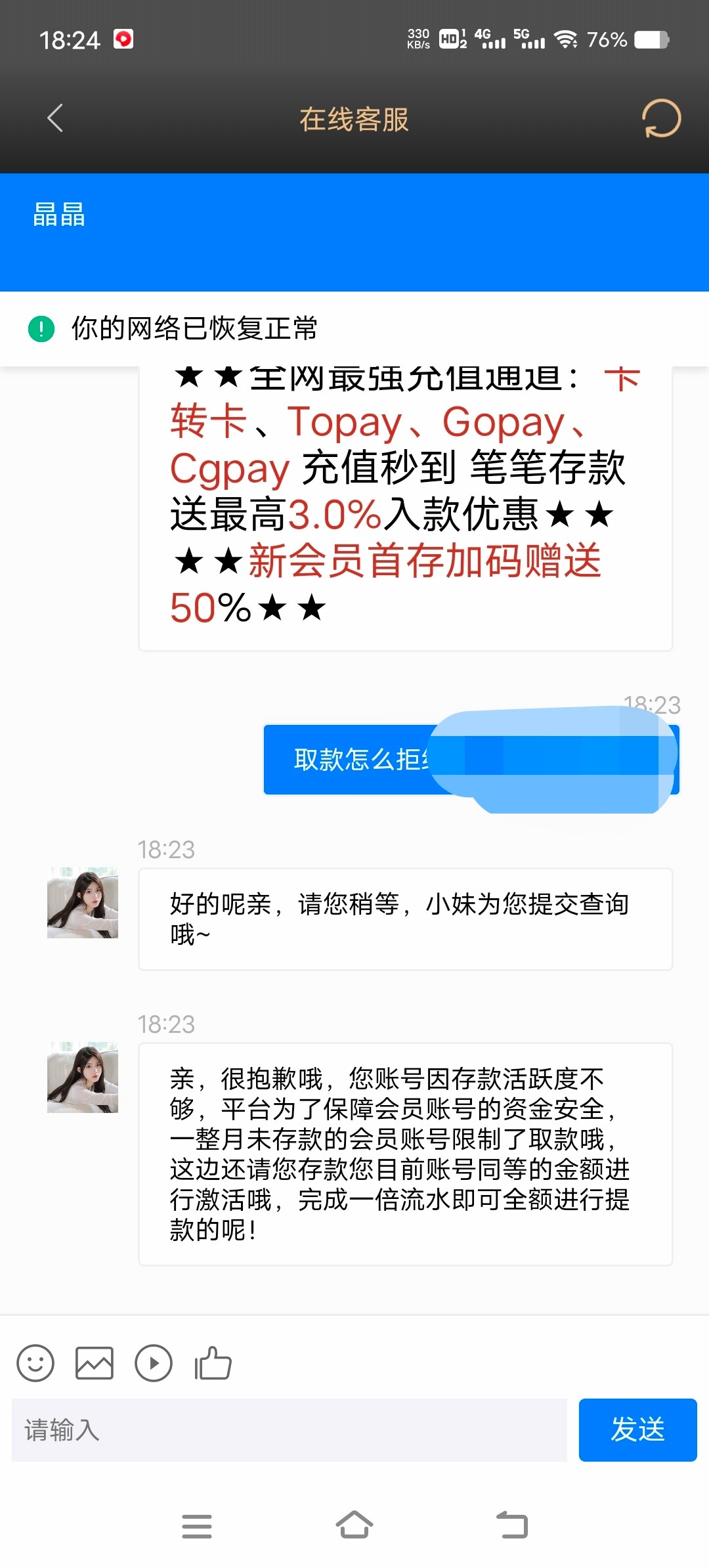 别充值 千万别充值 封号 相等金额会继续叫你充值 别充值