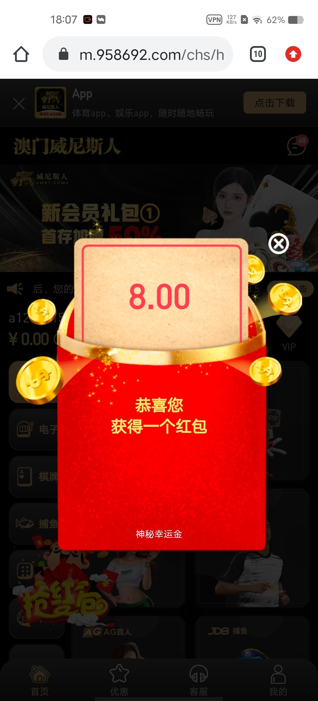 a742260803 以前提过一次,白嫖的也是神秘彩金。有没有人充过?会不会黑